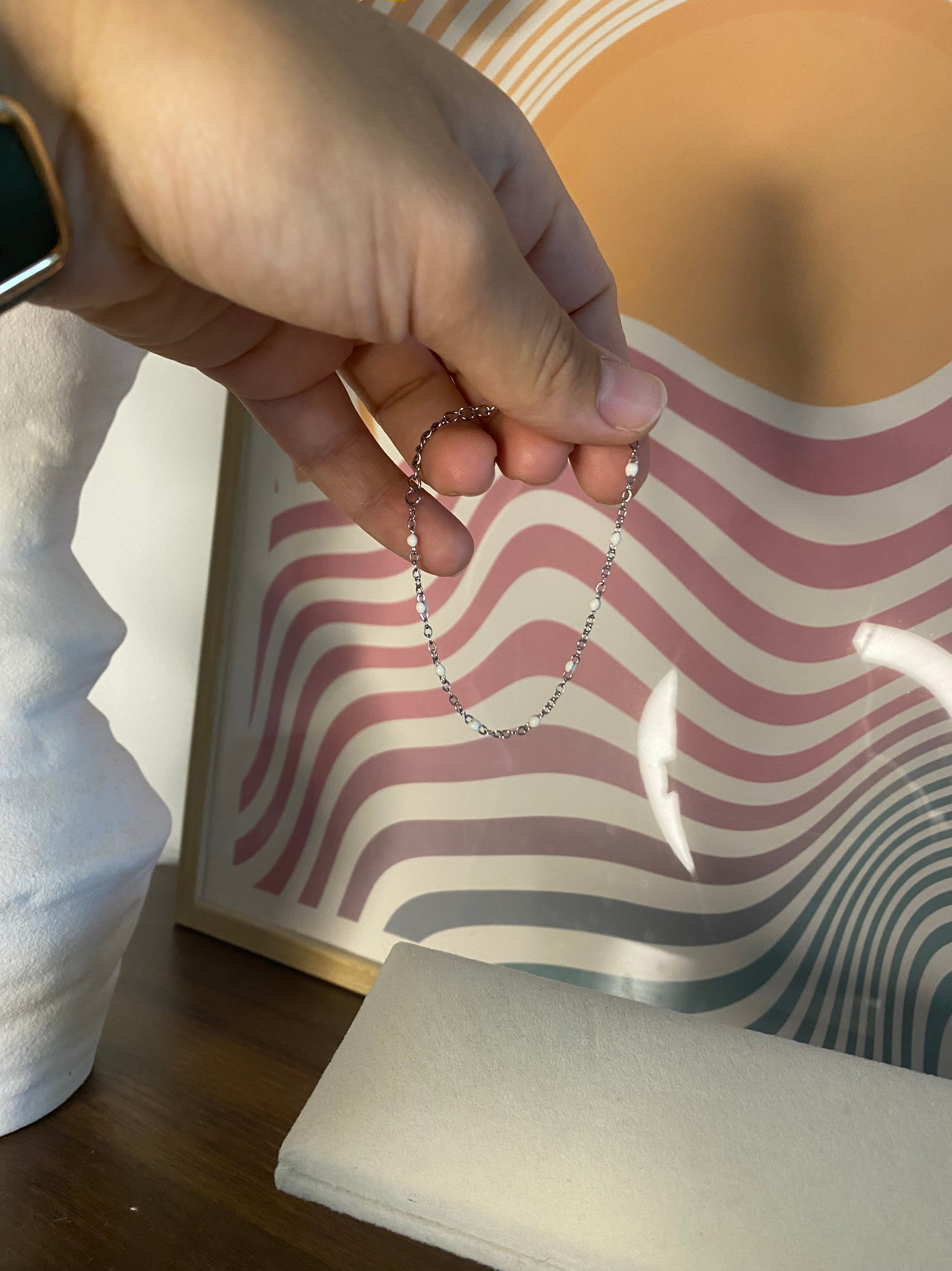 Bracelet minimaliste en acier inoxydable et résine blanche ( ancienne collection )