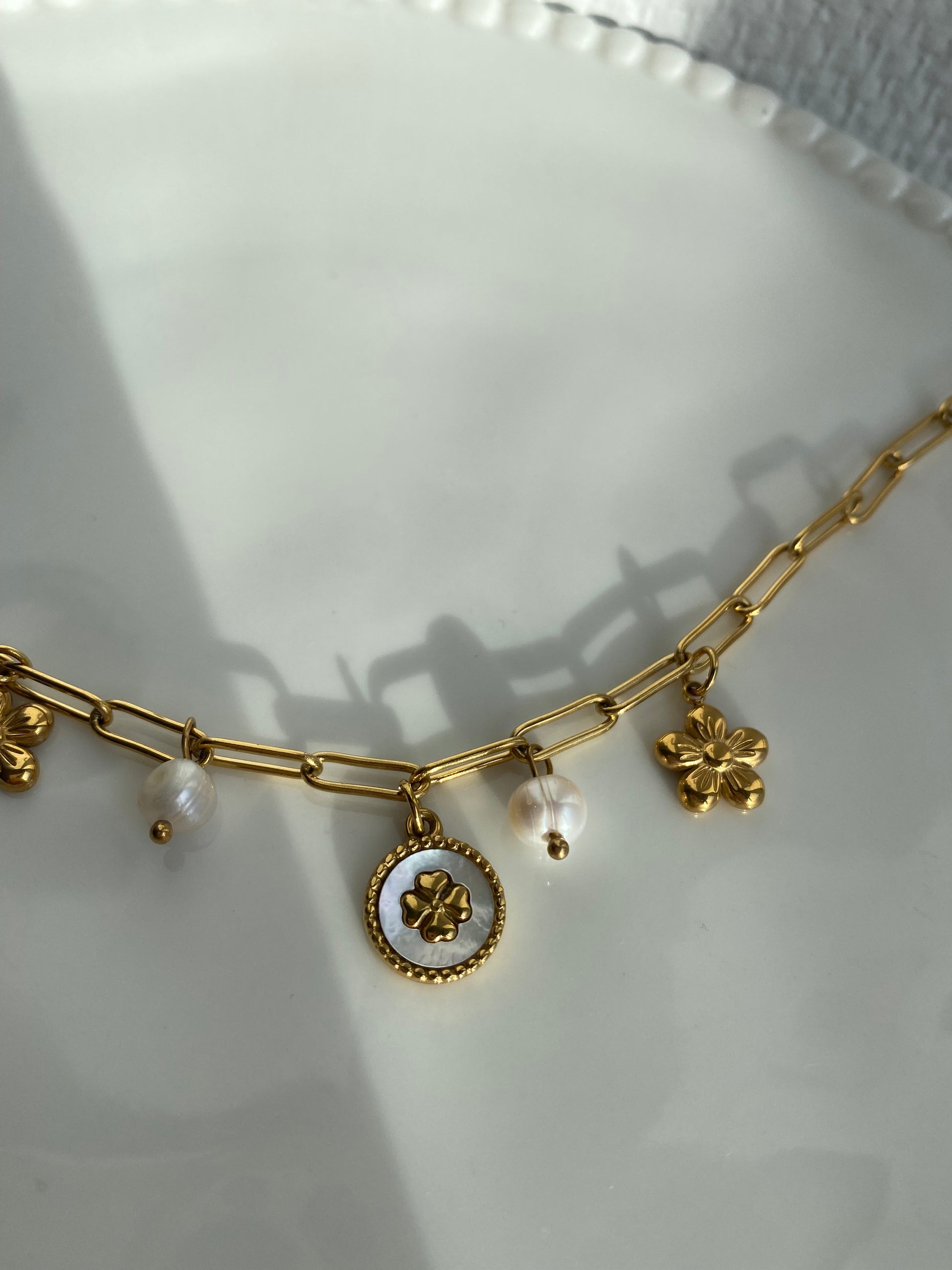 Matériaux : acier inoxydable, perles d'eau douce