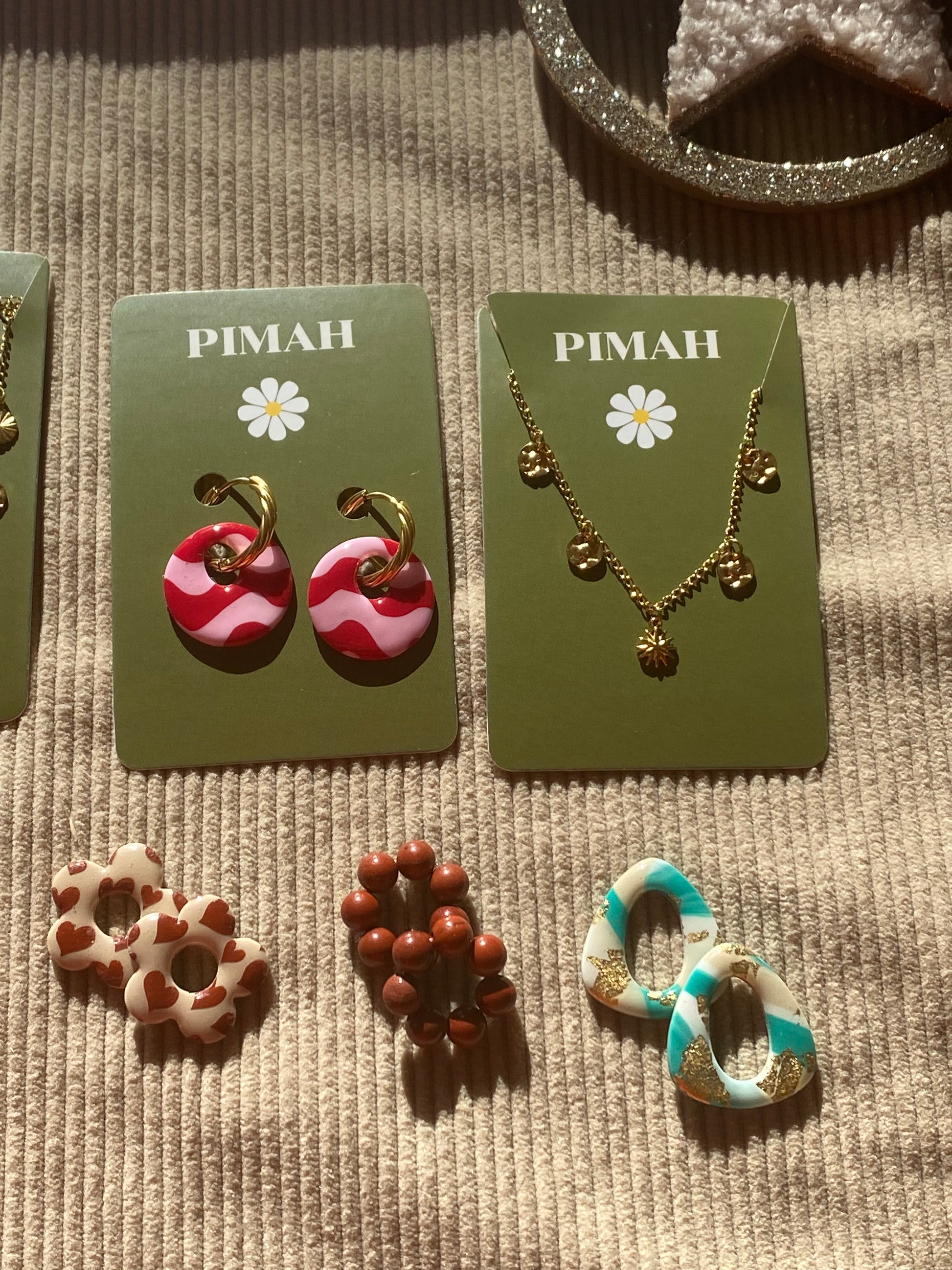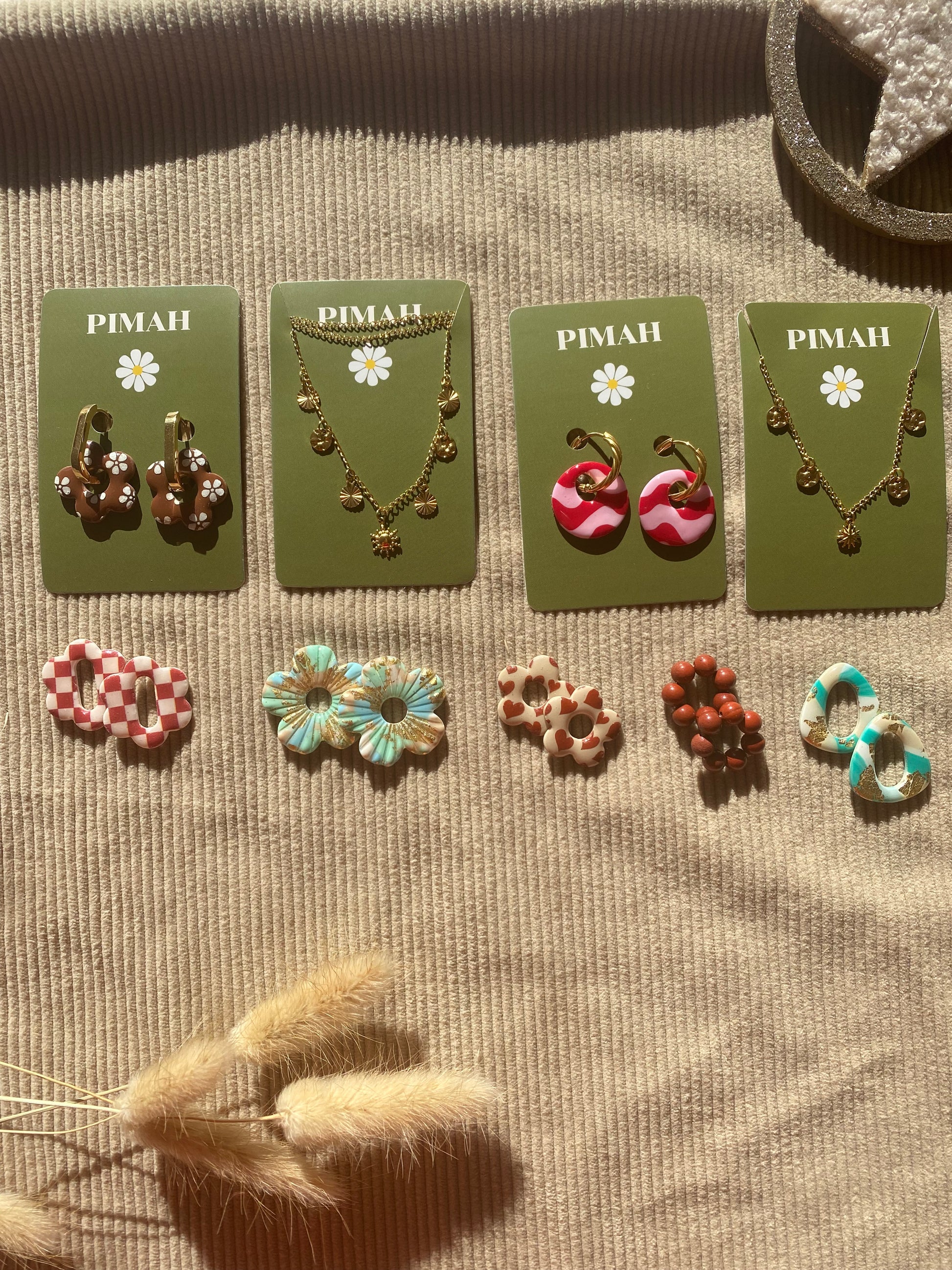 Une paire de boucles d’oreilles complètes (créoles, doré ou argenté + pampilles interchangeables) — version automnale des Primavera un de nos best seller.