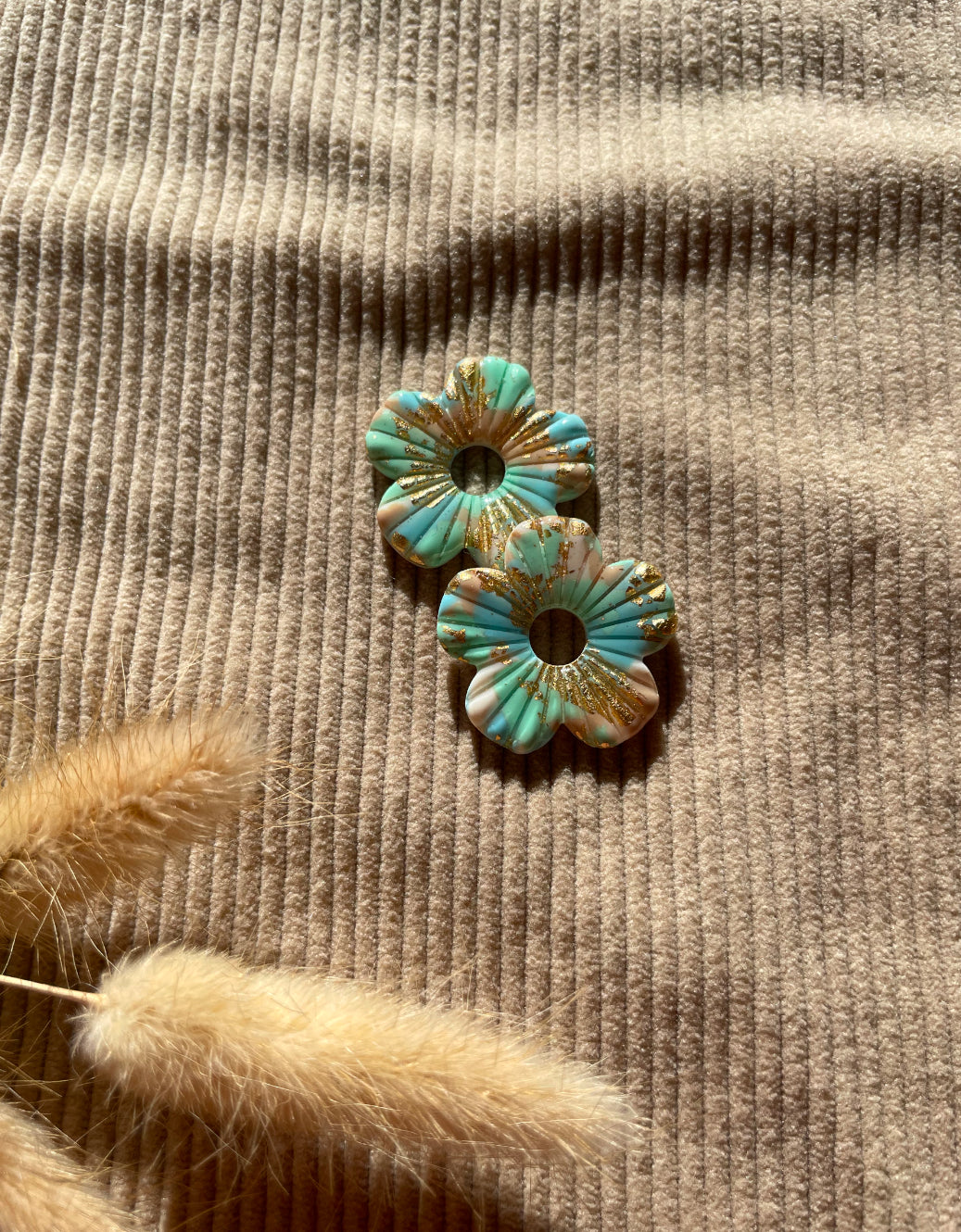 Une paire de pampilles interchangeables maxi aux couleurs pastel et dorées.