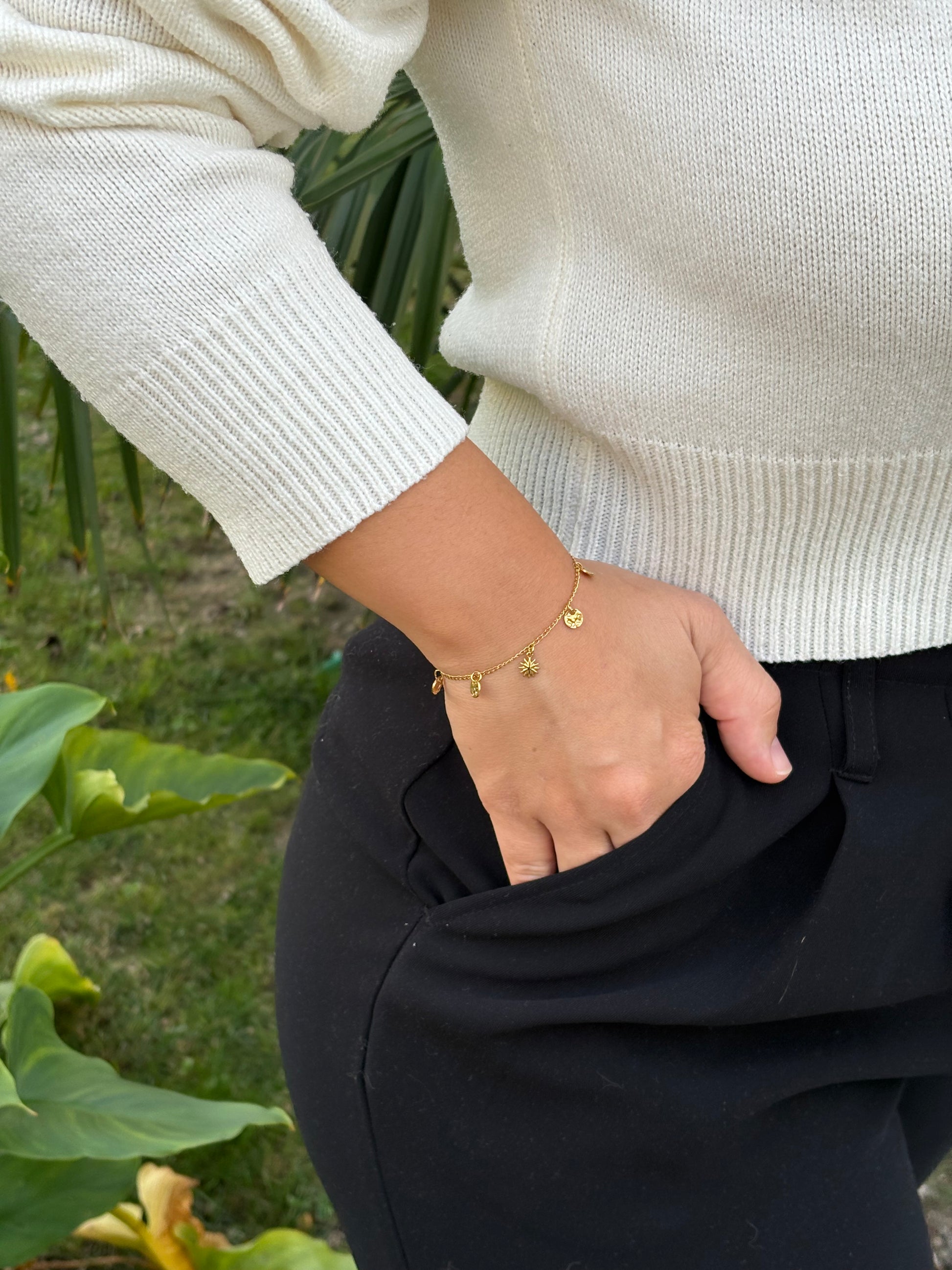 Un bracelet en acier inoxydable assorti au collier (13 à 18 cm, doré ou argenté), orné d’une étoile pour clôturer ce calendrier.