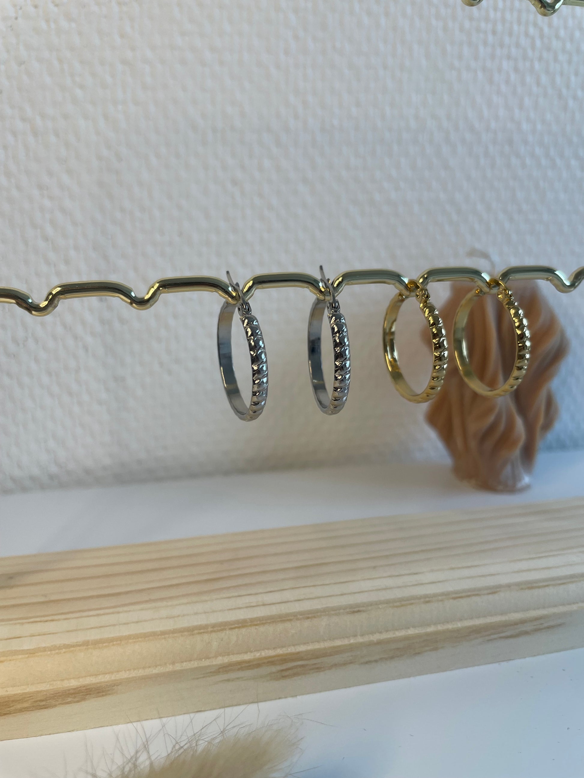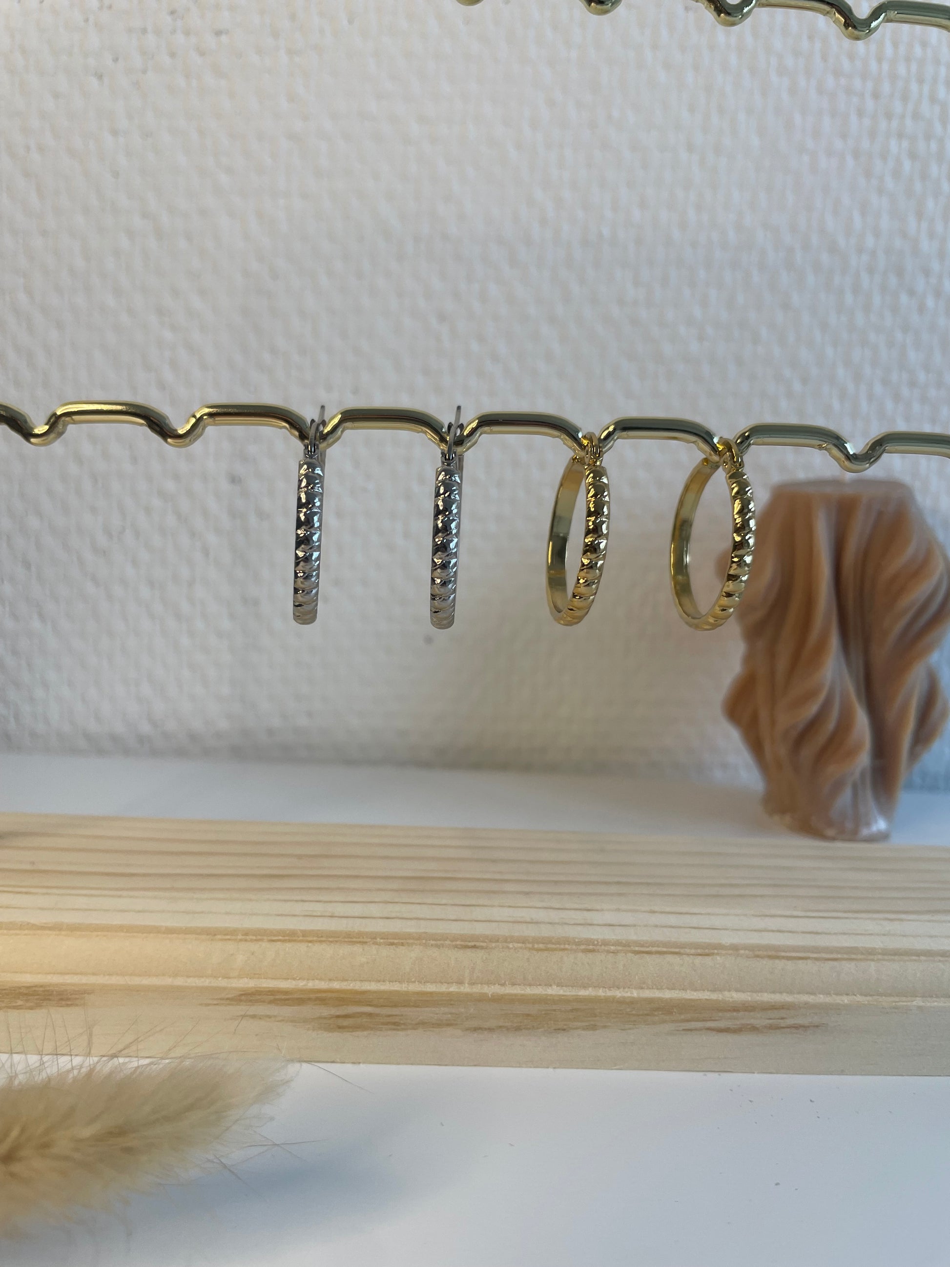 Craquez pour les créoles Françoise en acier inoxydable doré. A porter seule ou avec des breloques interchangeables du bar à boucles d'oreilles.