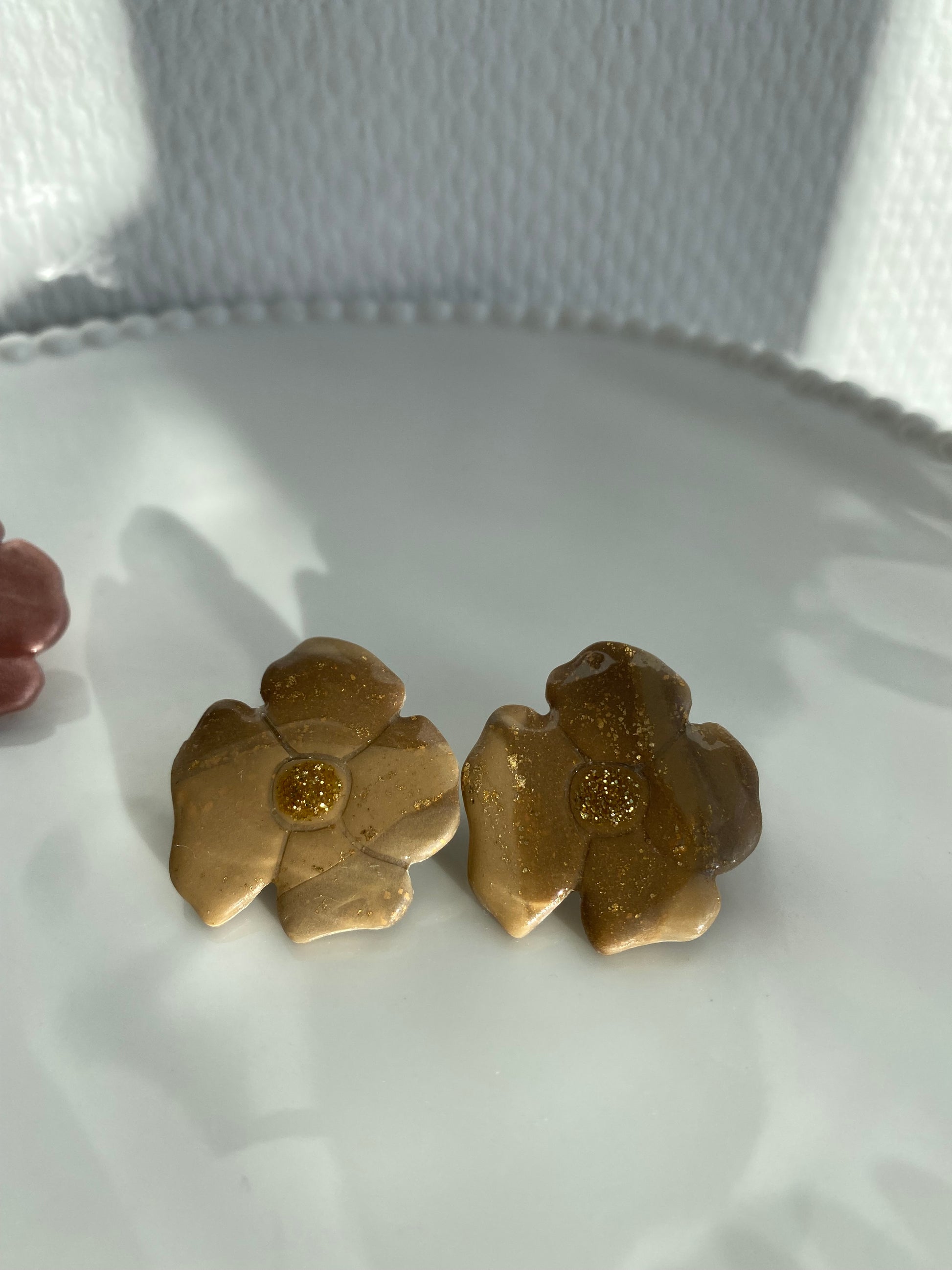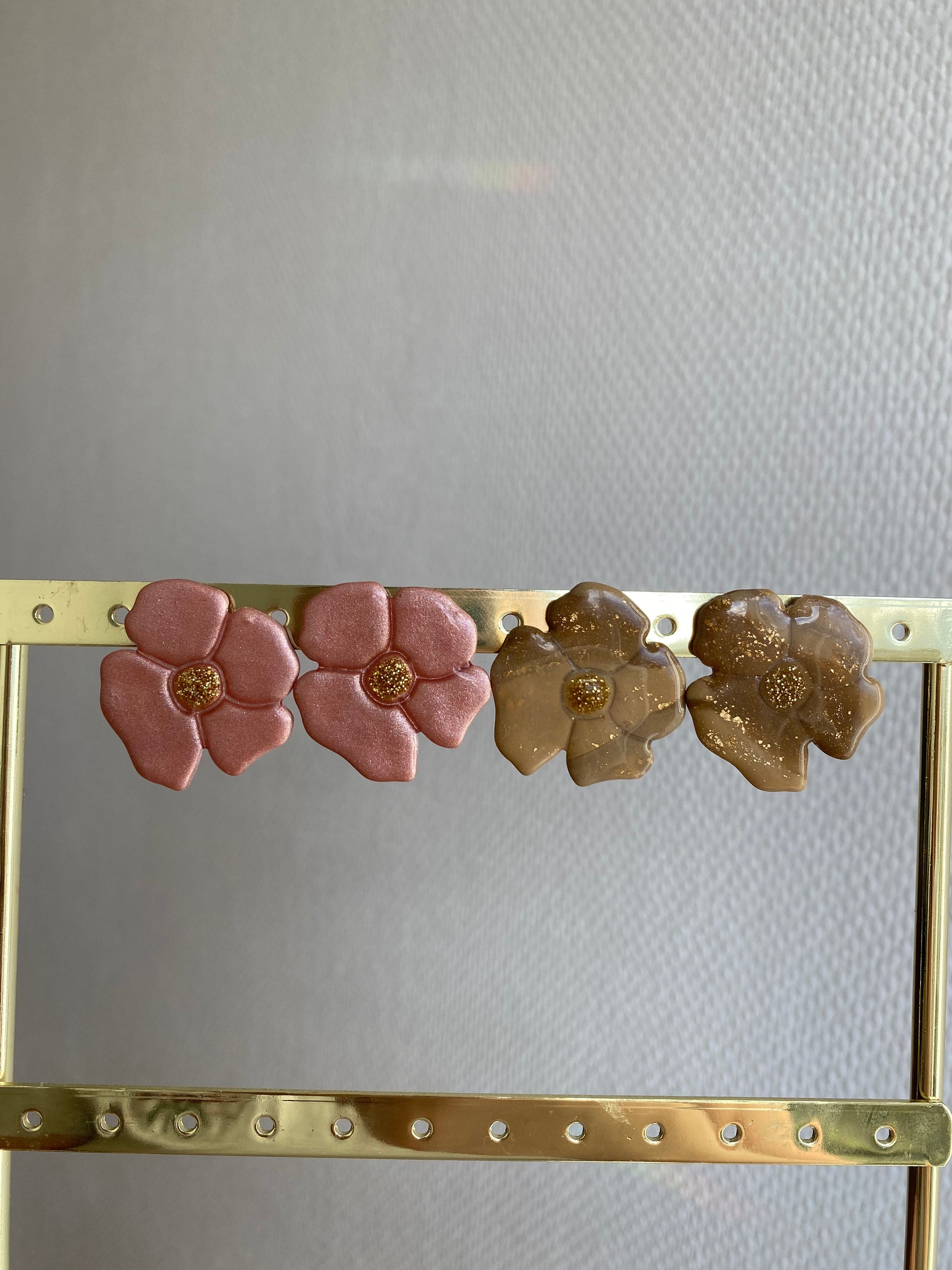 Tu aimes les bijoux fleuris et originaux ? Tu vas adorer nos fleurs Alma asymétrique en rose nacré ou en marron marbré. Monté sur un petit clou en acier inoxydable argenté.