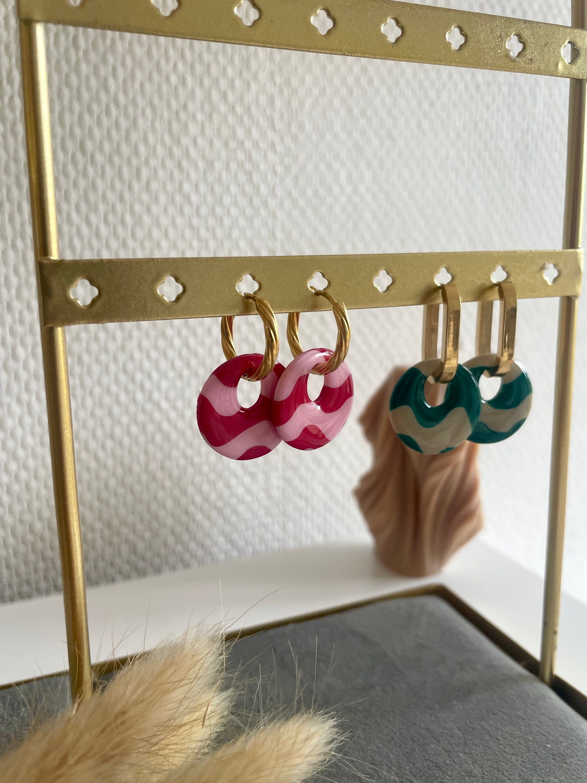 Évitez le contact avec l’eau et les produits chimiques pour préserver l’éclat et les couleurs de vos boucles d’oreilles.